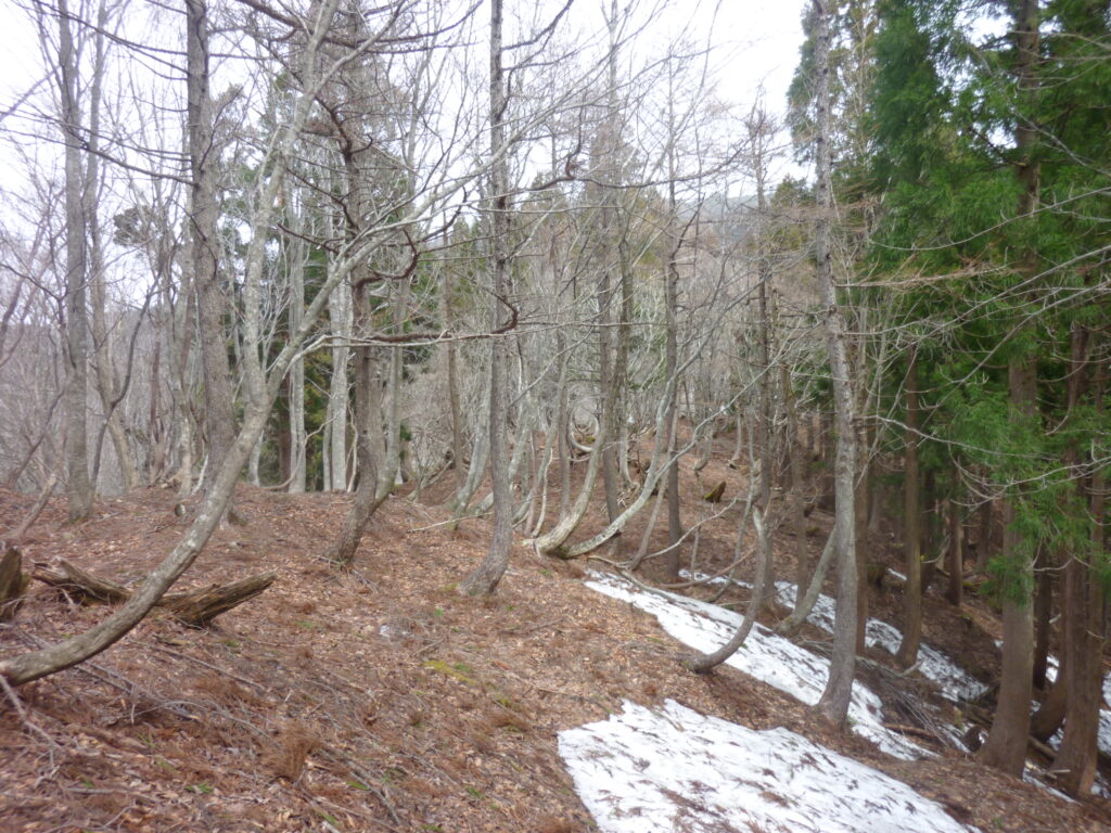 尾根は杉林なのと時期も時期なので、全く茂っていません。