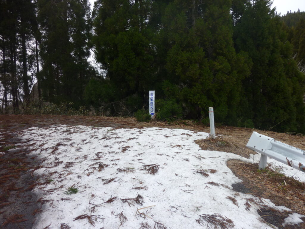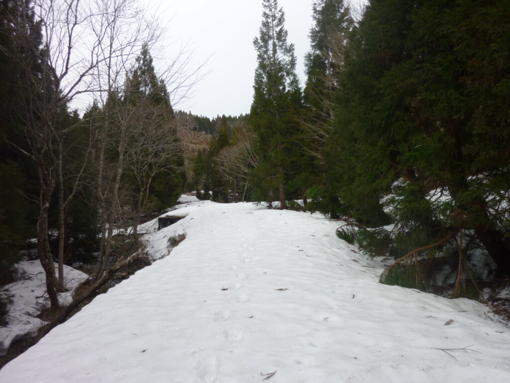 雪が結構残っていたので、峠からの4㎞ちょっとの林道歩きも約1時間かかりました。