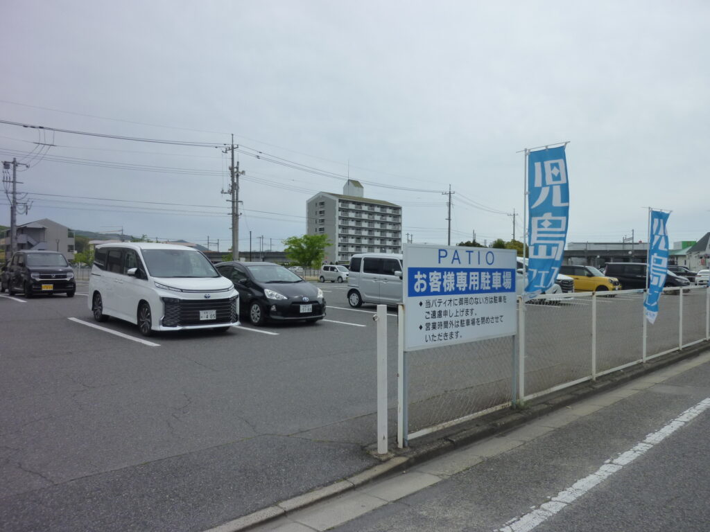 児島駅前ですが、パティオの広い無料駐車場もあります。この点は助かります。
