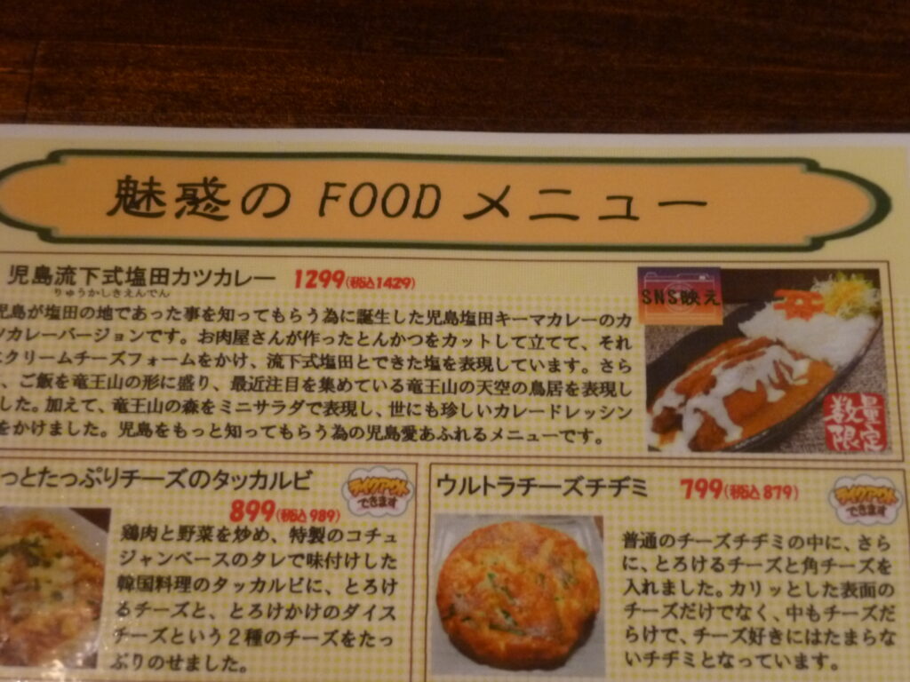 そして、その時は、ディナーでチーズメニューフェアというのをやっていて、児島塩田カツカレーというのが載っていました。