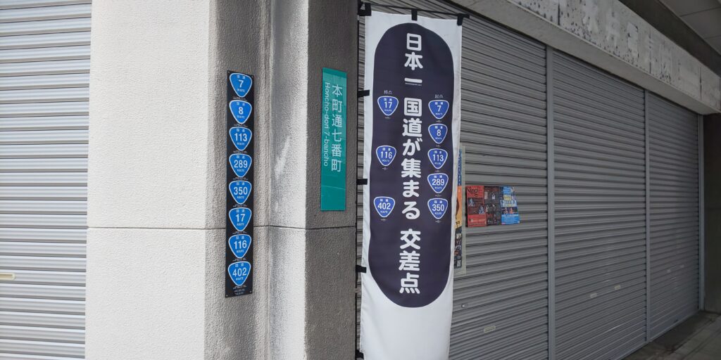 この交差点には、なんと 8本の国道 の起点または終点が集中しています。全国でも非常に珍しく、道路ファンの間では「国道の聖地」と呼ばれることもあります。