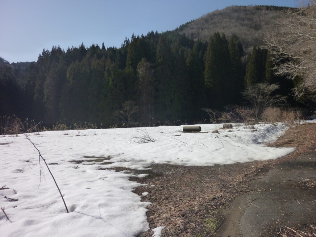 ちなみに、私はバイクで、手前に雪が積もっていたため、道が太くなっている道路脇に停めました。前年に二子山に登った時はここに停めました。
