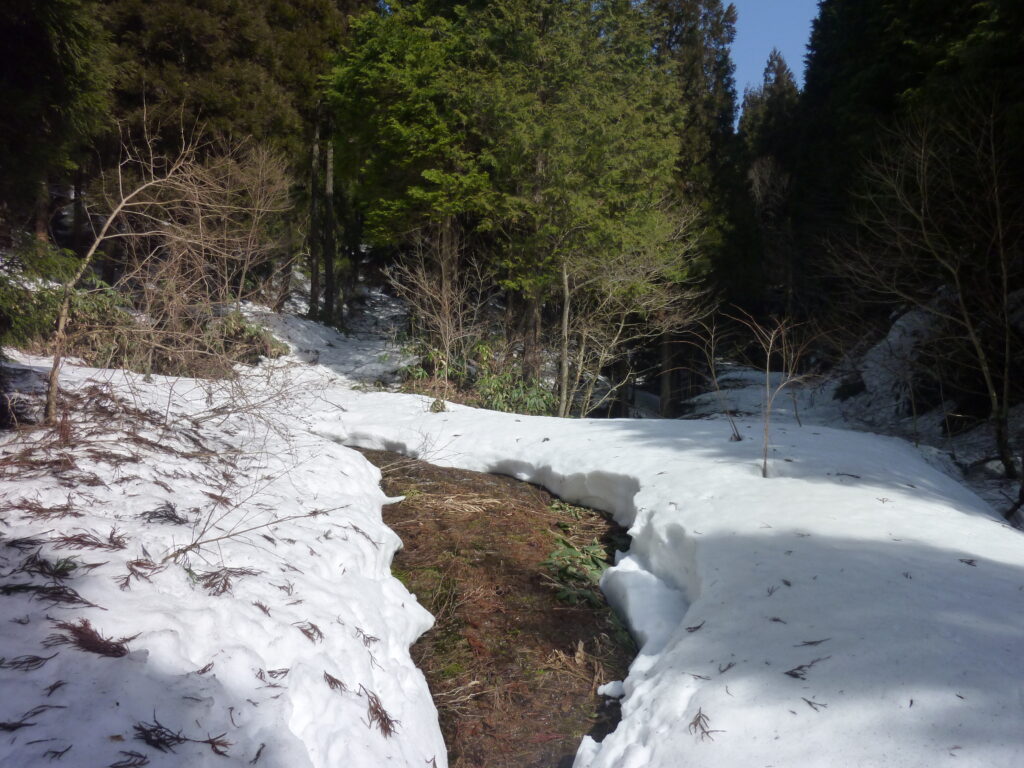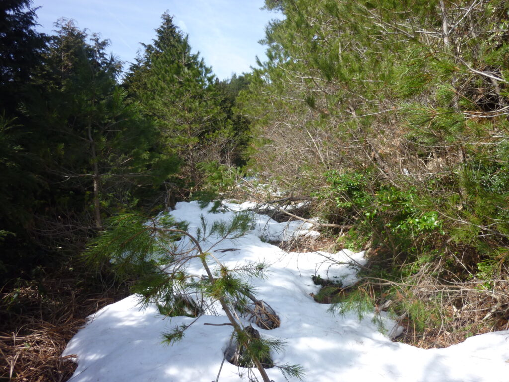 二子山は、峠から先は、猛烈な藪漕ぎです。なんですが、ちょっとだけ藪漕ぎを我慢したら、雪がなくても比較的楽に登れる方法があります。私は、それを発見したので、それで登りました。